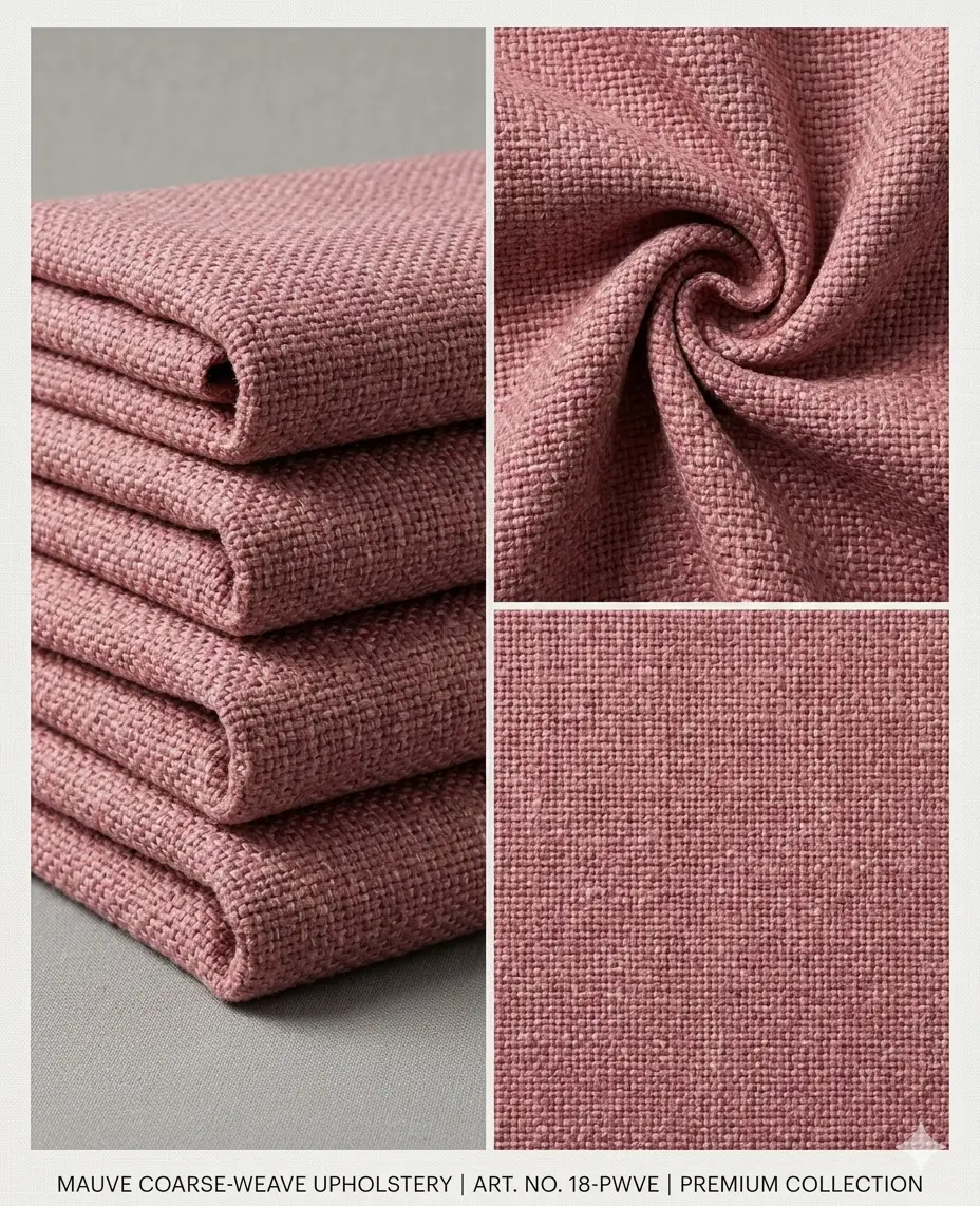 This mauve coarse-weave raw silk fabric features a soft dusty rose tone with a rich tactile texture. Its elegant color and structured surface make it ideal for upholstery, custom drapery, pillows, roman shades, and boutique-style interior spaces.